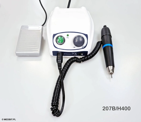 Mikrosilnik protetyczny STRONG 207B/H400 SAESHIN 35 000 obr./min, 65W, zestaw z mikromotorem H400, pedałem i akcesoriami
